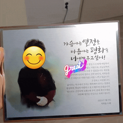 상패에 들어갈 모든 문장내용, 원하는 글씨체, 그리고 고화질 사진까지 이미 정해놨고